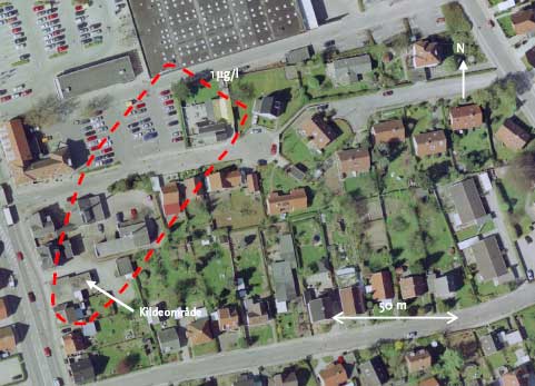 Den kraftigste grundvandsforurening er spredt ca. 100 m fra kildeområdet.