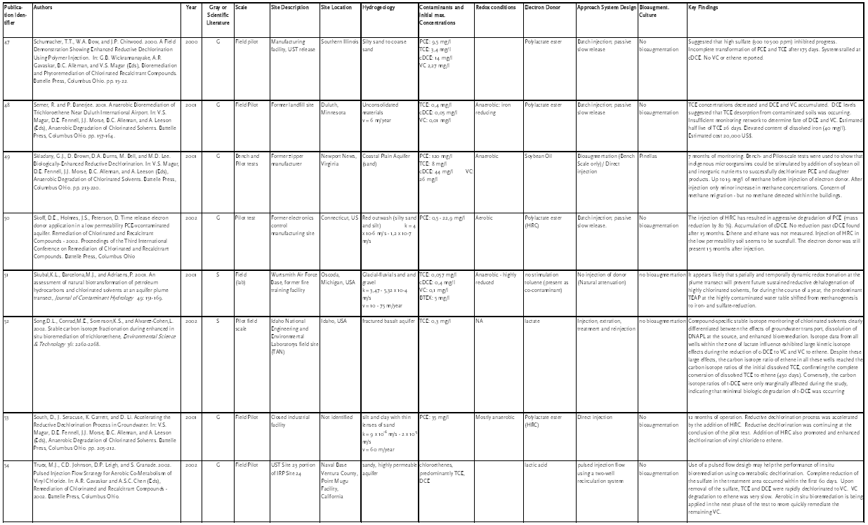 Stimuleret in situ reduktiv deklorering. Vidensopsamling og screening af lokaliteter