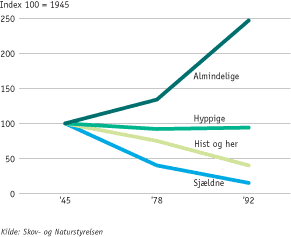 fremgang siden 1963, mens antallet af sjældne arter er faldet.
