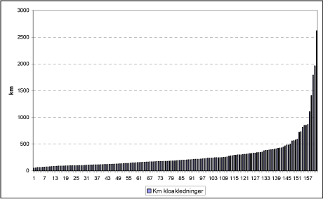 Figur 2 Kommunerne totale ledningslængde (162 kommuner)