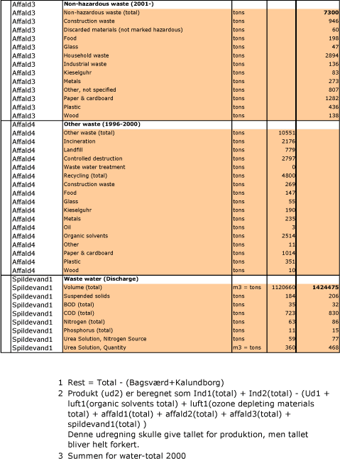 og øvrige organiske forbindelser har det ikke været muligt at finde data, hvorfor der er antaget en konservativ værdi. Det samme gør sig gældende for de uorganiske komponenter.