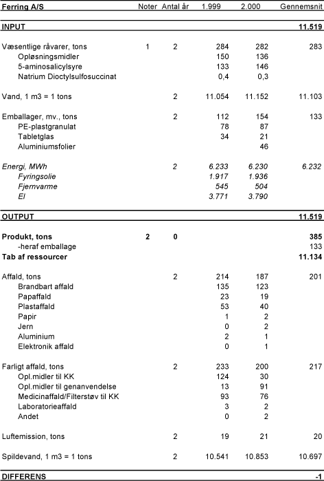 Som basis for kortlægningen er taget udgangspunkt i forbruget af køle/smøremidler ved ydelsen ”Fjernelse af 1 ton spåner”. Produktet sættes derfor lig med 1 ton metalspåner.