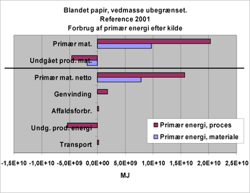 Figur 7.1. Det blandede papirsystems væsentligste kilder til miljøpåvirkninger indikeret ved energiforbrug