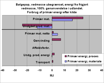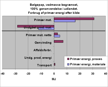 Tabellerne 74 – 78 viser de samlede vægtede værdier og primær energi per kg bølgepap. Figurerne 59 – 63 viser primær energi opdelt efter kilde per