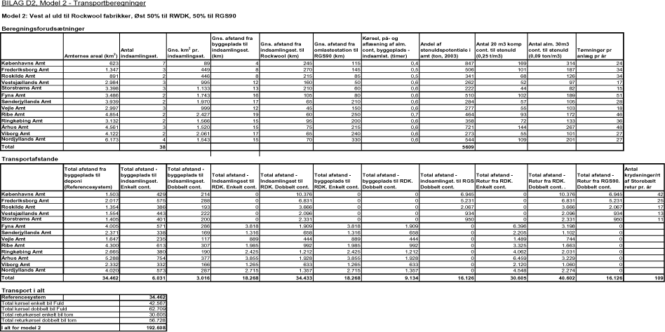 BILAG D2, Model 2 - Transportberegninger