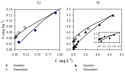 På figur 4.9 er sorptions- og desorptionsisotermerne modelleret ved hjælp af en "tw° Compartment" model, der tager hensyn til, at sorption foregår til både let-tilgængelige sites (ligevægtssorption) og til