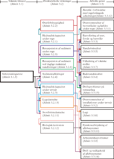 Figur 3-2: Eksempel på årsags-virknings sammenhænge: Effekterne af udløb fra trykledninger, jf. eksemplet i Afsnit.