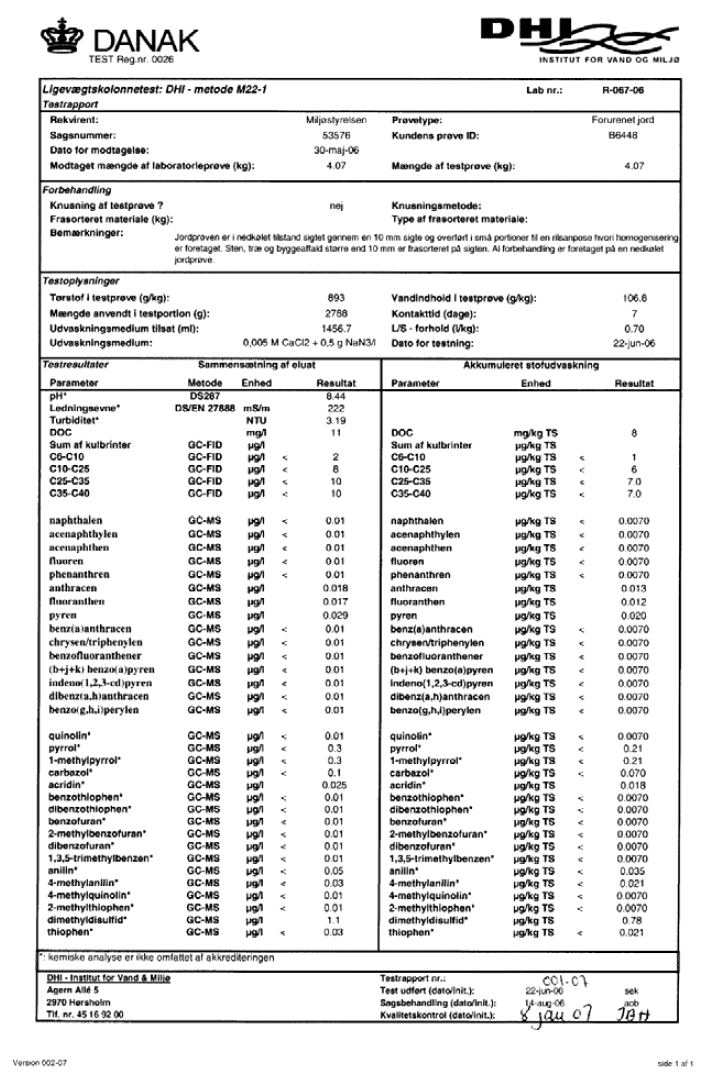Bilag B Akkrediterede rapporter for test af jordprøver for udvaskning af kulbrinter